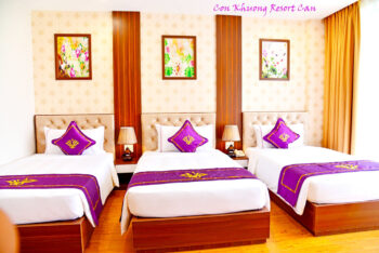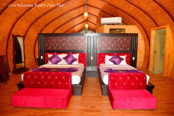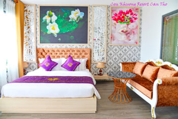 Resort Cồn Khương đạt chuẩn 4 sao quốc tế gồm 77 phòng nghỉ chia làm hai khu: Khu Bungalow được thiết kế độc đáo theo hình cánh sen, không gian riêng biệt, rộng 50m2 chứa đầy nội thất cao cấp; Khu khách sạn được xây dựng theo phong cách hiện đại, trang nhã với 59 phòng nghỉ sang trọng được trang bị đầy đủ tiện nghi, ban công hướng thẳng ra sông Hậu với tầm nhìn thoáng mát hẳn là sự lựa chọn lý tưởng để gia đình bạn ngắm trọn vẻ đẹp của sông nước miền Tây.