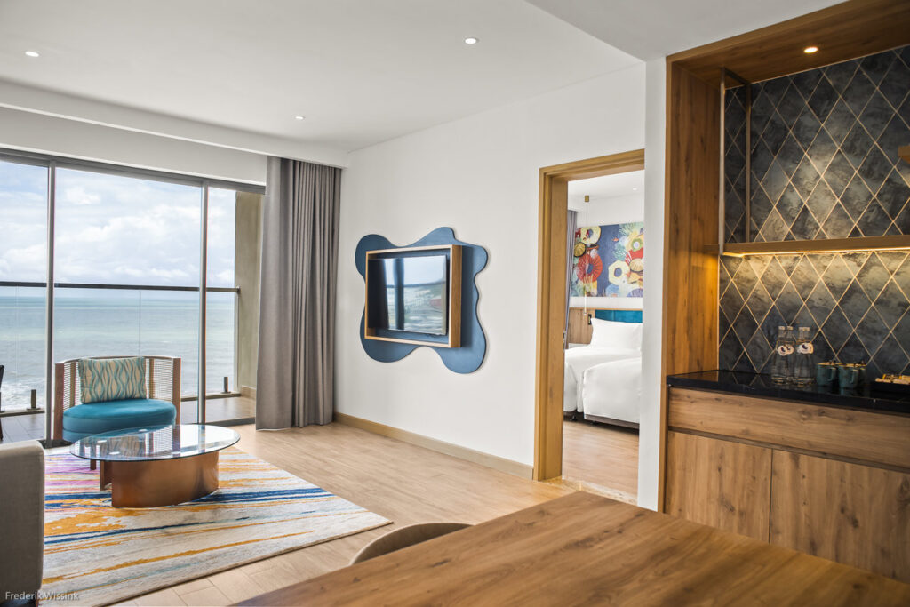 Phòng nghỉ được thiết kế rộng rãi và thoải mái, với trang thiết bị hiện đại và các tiện nghi đầy đủ như máy điều hòa, minibar, truyền hình cáp, két an toàn và wifi miễn phí. Ngoài ra, các phòng còn được trang bị ban công riêng với tầm nhìn đẹp ra bãi biển hoặc hồ bơi.