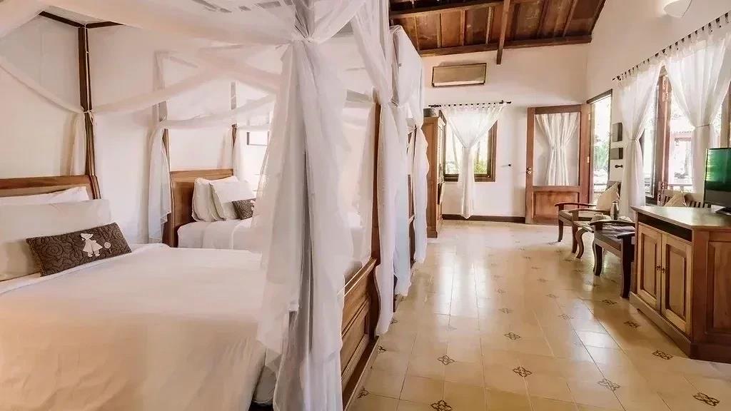 – Tối đa 3 người lớn hoặc 2 người lớn & 2 trẻ em dưới 12 tuổi có thể ở chung một phòng, ngoại trừ biệt thự có hai phòng ngủ có thể chứa tối đa 6 người lớn hoặc 4 người lớn và 2 trẻ em dưới 12 tuổi