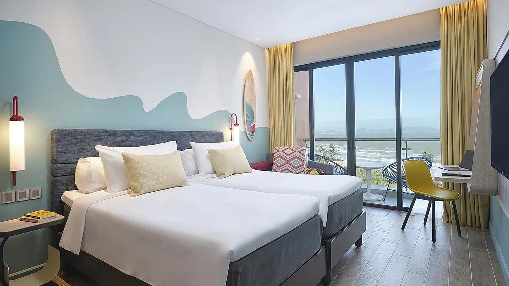 Một số phòng nghỉ có cửa sổ panorama mở ra cảnh quan tự nhiên và biển Vũng Tàu tuyệt đẹp. Các phòng Premium có ban công hướng biển, tạo không gian lý tưởng để thư giãn và tận hưởng. Khách sạn còn có phòng Premium Family rộng rãi với giường đôi và giường tầng, đem lại không gian thoải mái cho cả gia đình.