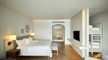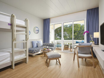 – Trẻ em từ 0-11 tuổi: Miễn phí tối đa 1 trẻ sử dụng chung giường với bố mẹ. Riêng hạng phòng Family miễn phí tối đa 2 trẻ.