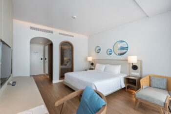 Khách sạn có 2 khu bên đồi và bên biển với khuôn viên được thiết kế theo phong cách châu Âu và đa số các phòng nghỉ đều hướng ra biển tạo nên không gian sang trọng và thoáng mát. Khu nghỉ dưỡng có hồ bơi ngoài trời, nhà hàng phụ vụ món Á Âu, phòng tập thể hình và các dịch vụ khác giúp quý khách khi lưu trú tại khách sạn có thể nghỉ dưỡng và trãi nghiệm các dịch vụ khi lưu trú tại đây.