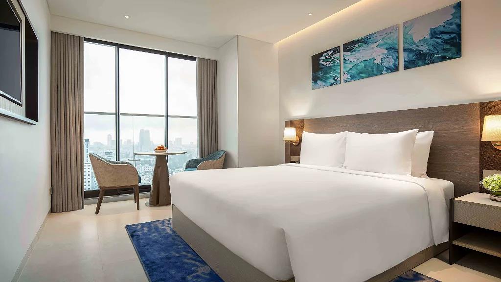 Radisson Đà Nẵng mong muốn đem đến cho quý khách một trải nghiệm hoàn toàn khác, một phong cách tươi trẻ và hiện đại, sẽ đáp ứng đầy đủ mọi tiêu chí mà khách hàng mong muốn tìm kiếm. Khách sạn cung cấp dịch vụ trọn gói độc quyền bao gồm các dịch vụ Spa, Quán Bar trên sân thượng, Dịch vụ ăn uống, Các hạng phòng lưu trú hướng biển, hướng thành phố.