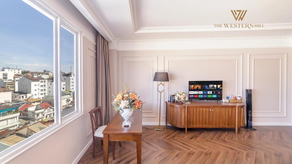 Mỗi phòng nghỉ tại The Western Hill được thiết kế để mở ra một không gian thoáng đãng với cửa sổ lớn, bồn tắm nằm sang trọng, và tầm nhìn đắt giá hướng ra trung tâm Đà Lạt. Sự tiện nghi và đẳng cấp đến từ mỗi chi tiết đã được chú trọng, để đảm bảo khách hàng của chúng tôi có thể thư giãn và tận hưởng trọn vẹn kỳ nghỉ của mình.