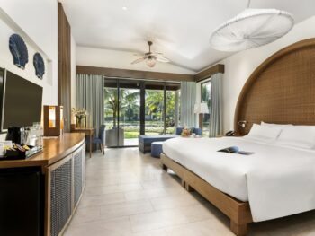 Khu nghỉ dưỡng Novotel Phú Quốc được thiết kế bởi các kiến trúc sư của Kume Asia (Nhật Bản), lấy cảm hứng từ hình ảnh làng chài ven biển, thể hiện hài hòa dấu ấn văn hóa bản địa cùng yếu tố sang trọng. Với mật độ xây dựng thấp, toàn bộ diện tích gần 60.000m2 là cây xanh, mặt nước, tạo khoảng không gian xanh mát, giao hòa với thiên nhiên, 366 phòng được bố trí tầm nhìn đa dạng, dễ dàng đáp ứng mọi nhu cầu cao cấp của du khách.