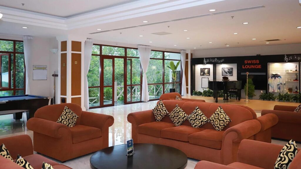 Swiss-Café là nhà hàng theo thiết kế đương đại với phong cách ẩm thực hiện đại, là một nơi lý tưởng cho một bữa ăn nhanh hay một bữa ăn hoàn hảo. Nhà hàng phục vụ các món ăn Âu và Á.