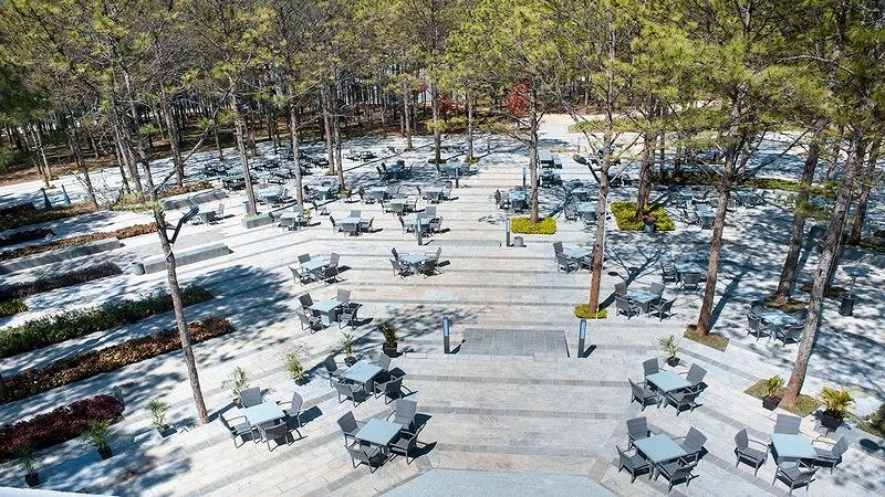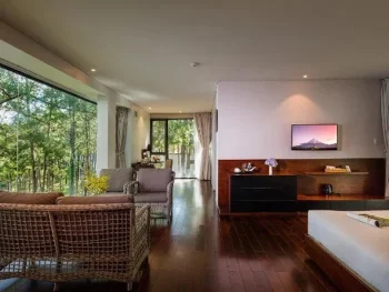 Từ trong phòng, quý khách có thể ngắm nhìn ra rừng thông xanh thẳm, vườn hoa đầy màu sắc hoặc khung cảnh hồ Tuyền Lâm thơ mộng. Dọc theo những con đường quanh co men theo triền đồi, len lỏi giữa rừng thông, du khách sẽ được chiêm ngưỡng vẻ đẹp của các vườn hoa đa sắc – từ hoa hồng môn đến cẩm chướng, hoa anh đào, đều tỏa sắc rực rỡ dưới ánh nắng dịu nhẹ của Đà Lạt. Đâu đó giữa rừng thông, quý khách cũng sẽ tìm thấy những tác phẩm điêu khắc gốm nghệ thuật, tô điểm thêm cho khung cảnh thiên nhiên sống động nơi đây.